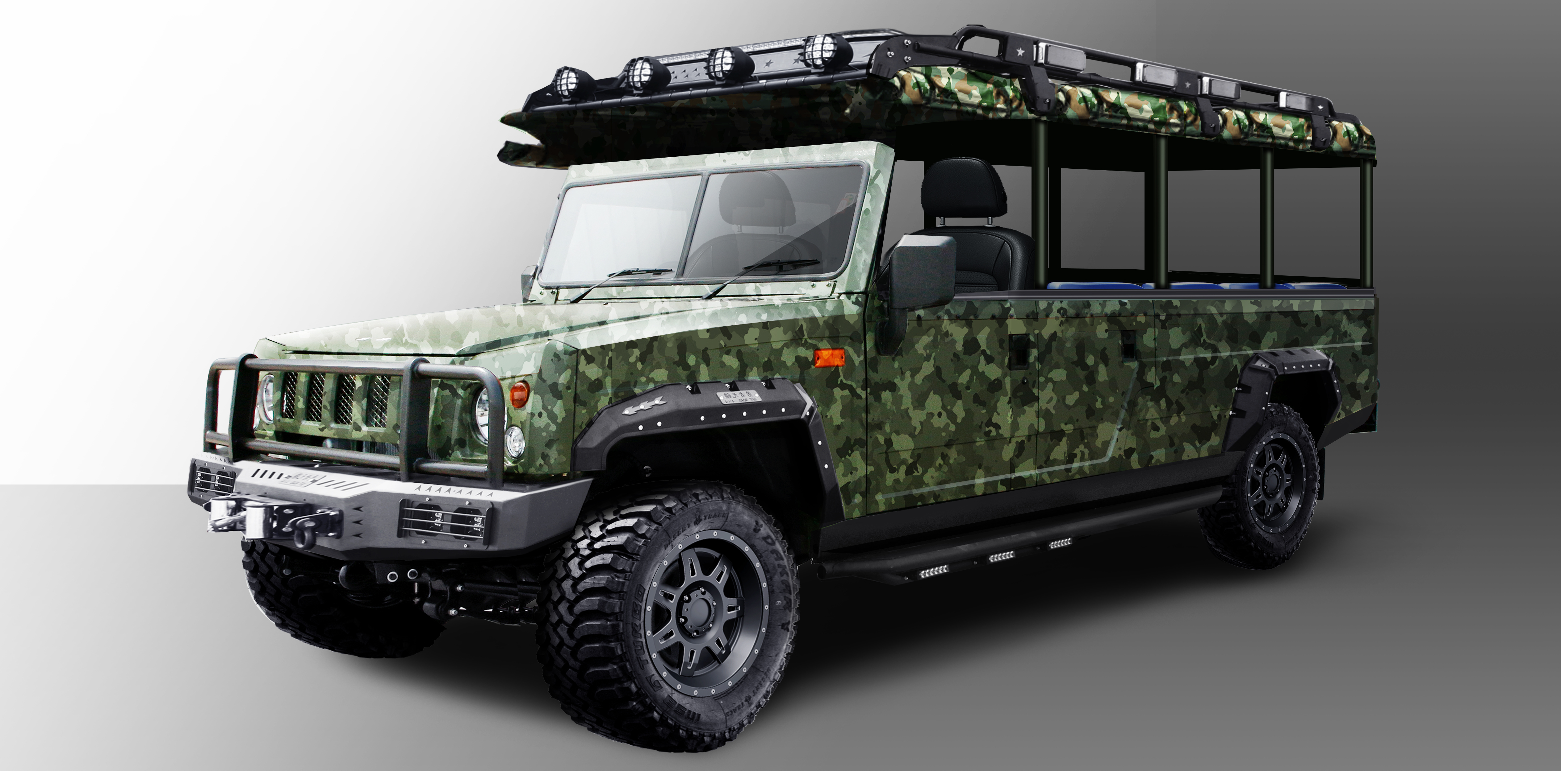 1、源于勇士軍車,外型威猛霸氣,草原、林地景區野外適應性好; 2、可承載15人,景區觀光需求多; 3、時速30公里以內,可上場內牌照及保險。