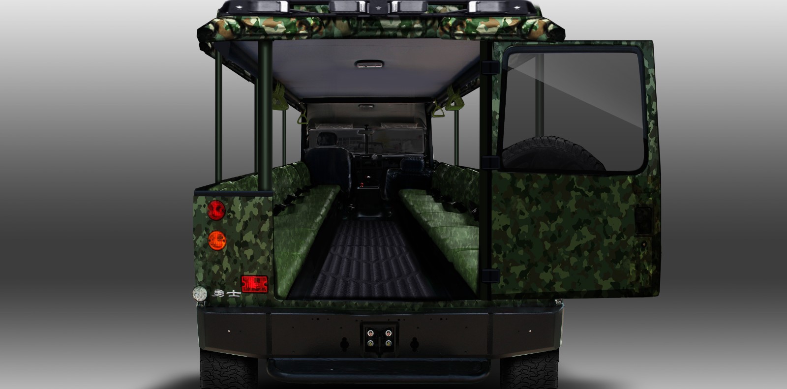 1、源于勇士軍車外型威猛霸氣,草原、林地景區野外適應性好; 2、可承載15人,景區觀光需求多; 3、時速30公里以內,可上場內牌照及保險。